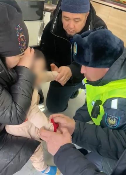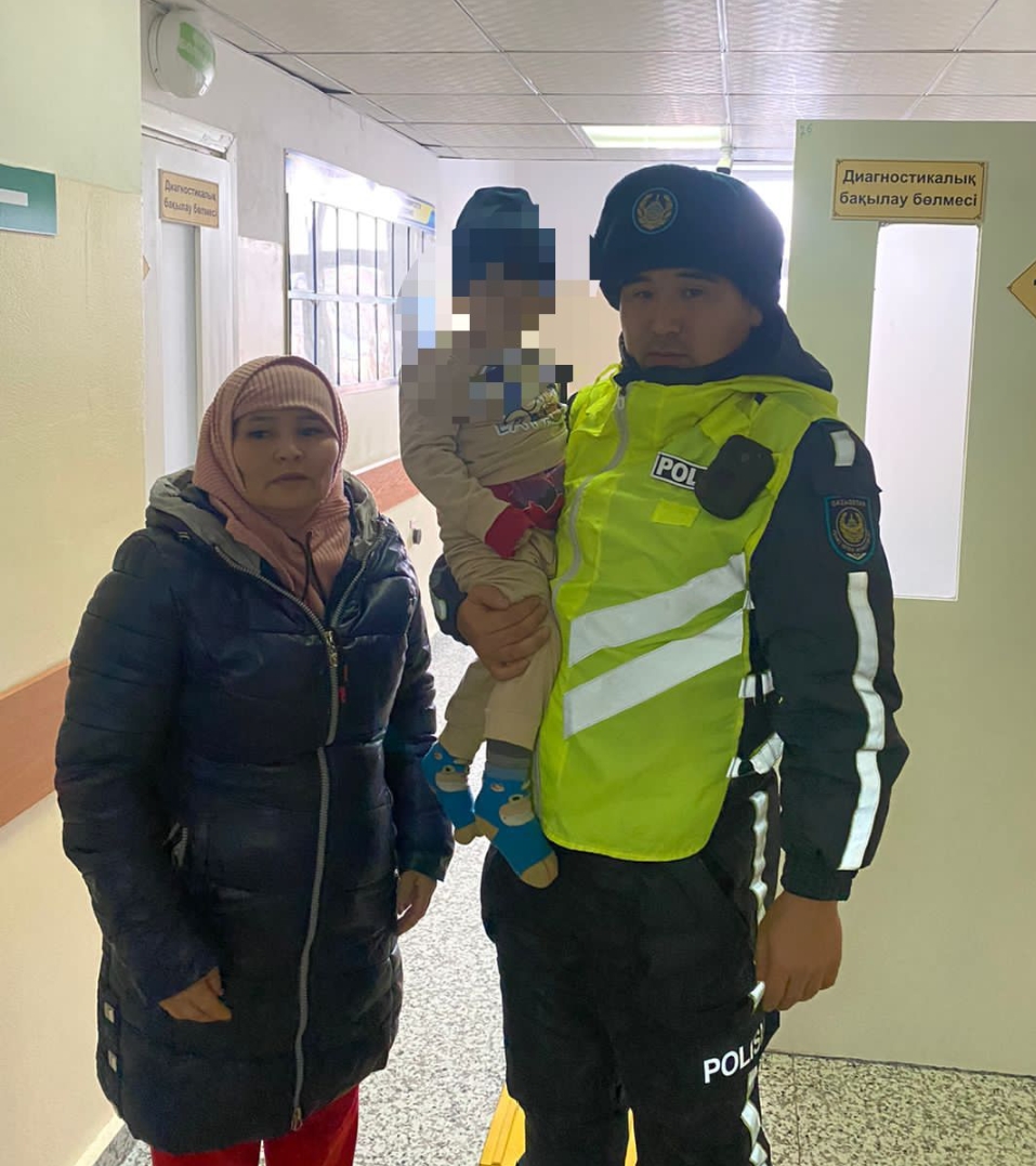 Нақтырақ айтсақ, С.Ерубаев көшесінде күнделікті өзіне жүктелген жұмысын атқарып тұрған полицейдің жанына белгісіз әйел келіп, ұлының аяқасты ауырып, талып қалғанын айтып көмектесуін сұрайды. Мұны естіген полицей шұғыл әрекет етіп, баланы сол маңдағы дүкенге жылы жерге кіргізеді.