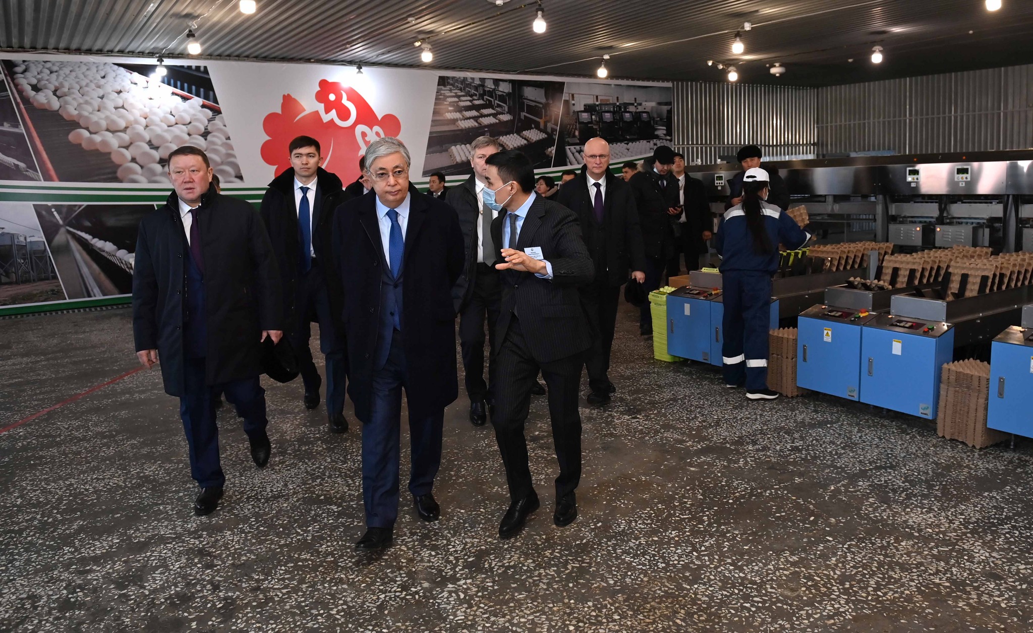 Мемлекет басшысына өндірістік қуаты сағатына 120 мыңнан астам жұмыртқа шығаруға жететін сұрыптау, өлшеу және маркерлеу цехындағы Nabel технологиясы көрсетілді. Сондай-ақ цехта құстарға жем-су беру жүйесін және ылғалды, жарық пен температураны қалыпты ұстап тұратын құрылғы орнатылған. Өндірістің автоматтандырылуы сегіз сағатта миллионға дейін жұмыртқа тасымалдауға және орауға мүмкіндік береді.