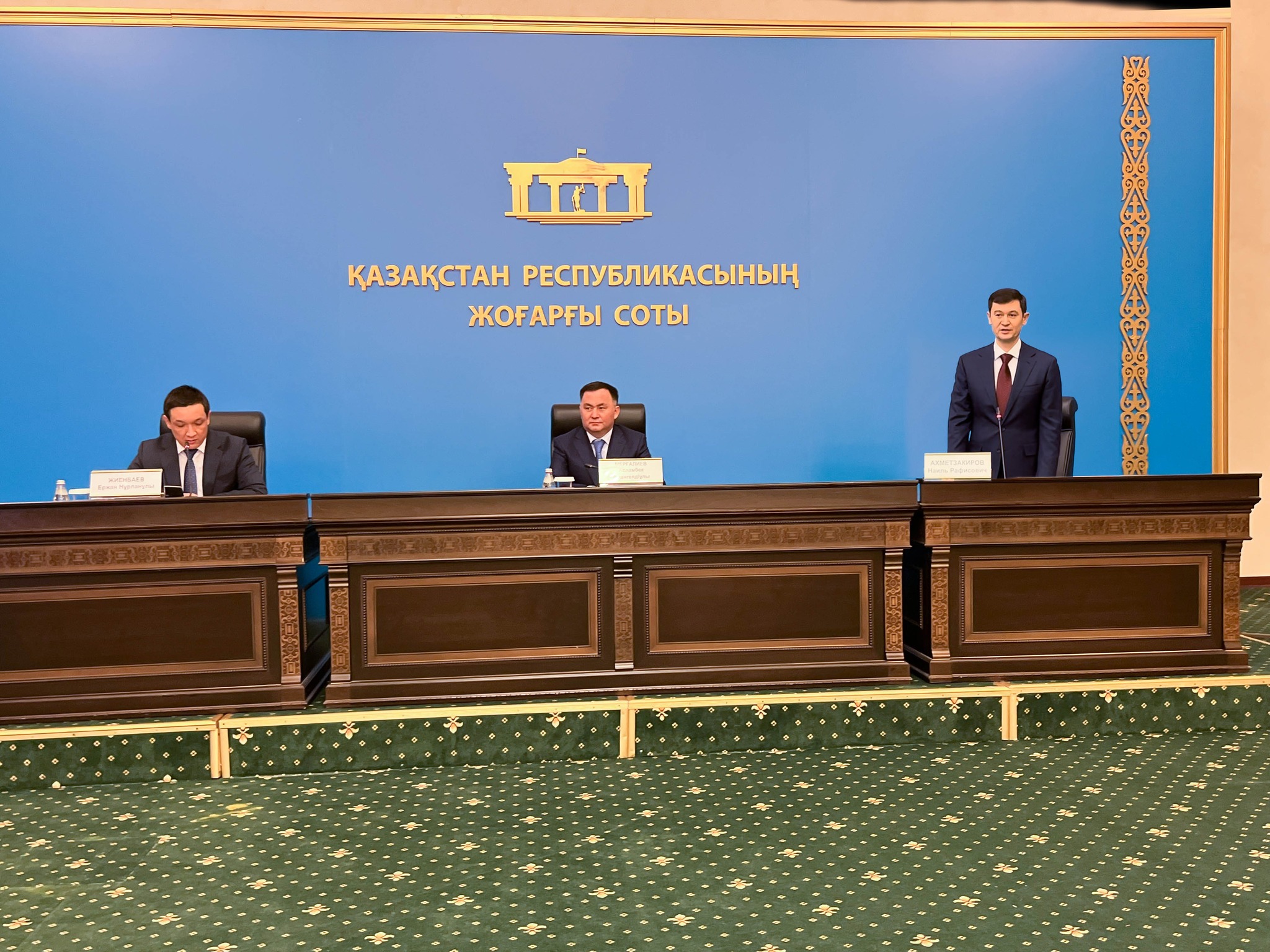 Президент Әкімшілігі Басшысының орынбасары Ержан Жиенбаев жаңадан құрылған Сот әкімшілігіне Мемлекет басшысының өкімімен тағайындалған оның басшысы Наиль Ахметзакировті таныстырды. Н.Ахметзакировтің құқық саласындағы көпжылғы практикалық тәжірибесі, прокуратура органдарындағы, Президент Әкімшілігі мен сот жүйесіндегі басшылық қызметі аталып өтілді.