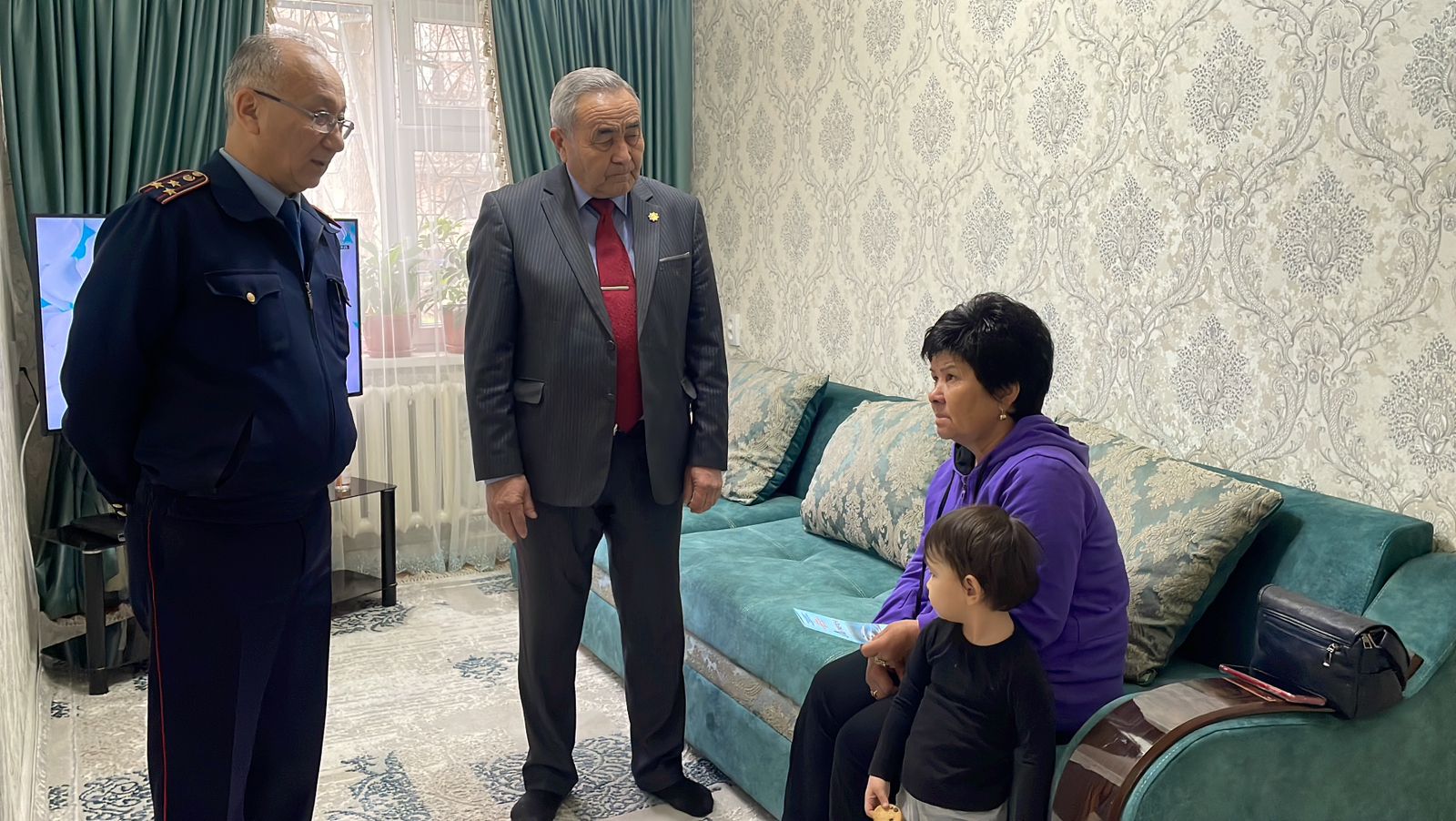 Жамбыл облысы ПД Кадр саясаты басқармасының бастығы Ержан Егембердиев және ІІО ардагерлер кеңесінің төрағасы Тұрдалы Шералин қаңтар оқиғалары кезінде қызметтік борышын атқаруда ерлікпен қаза тапқан полиция капитаны Рахат Сланбековтің отбасында болып қайтты.