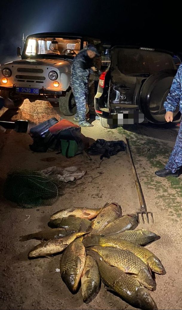 Іс-шара барысында полиция қызметкерлерімен “Toyota RAV4” маркалы автокөлігі тоқтатылып, тінту жүргізу кезінде көліктің жүк салғышынан 12 балық және балық аулауға тыйым салынған шанышқы (острога) құралы анықталды. Жалпы ауланған балықтың салмағы- 47,5 кг.