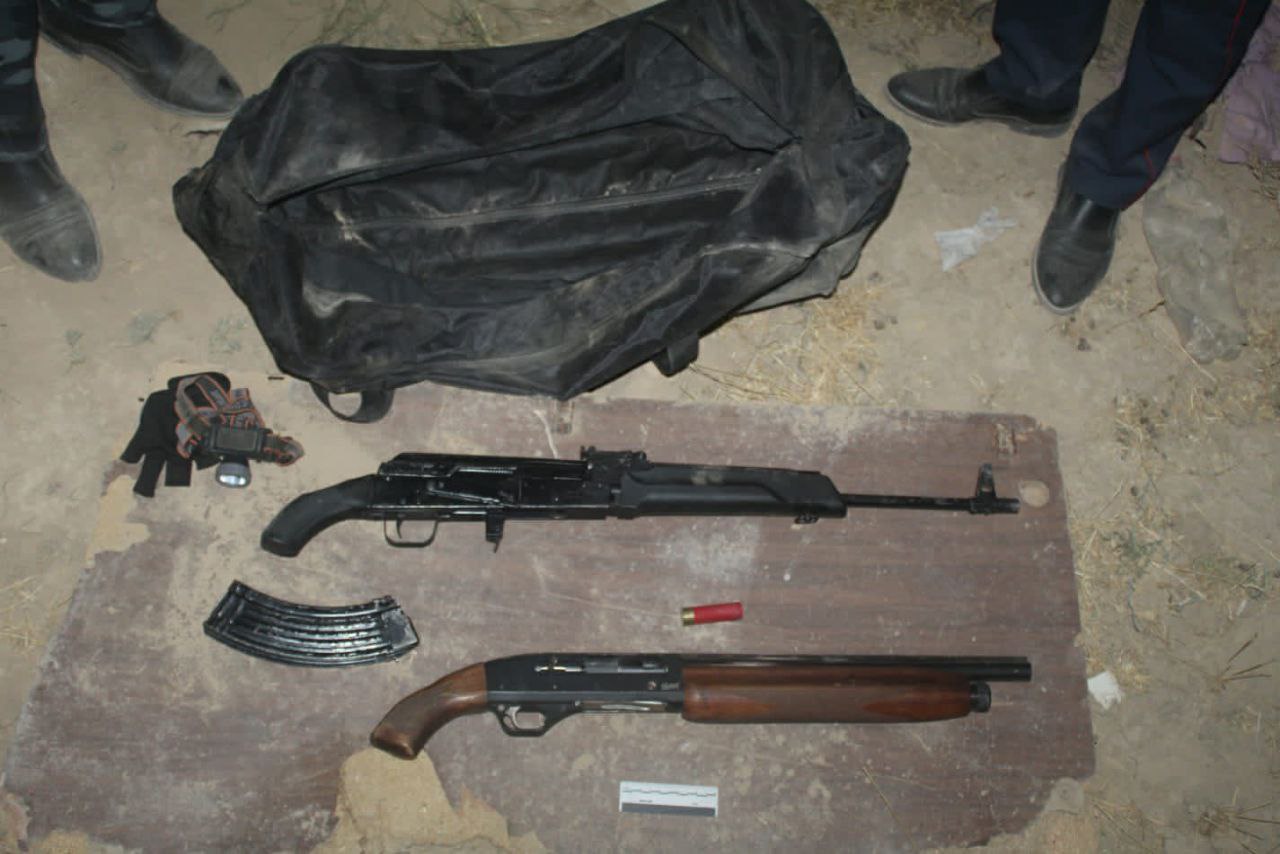 Олардан «Сайга» қаруы мен тегіс ұңғылы 12 калибрлі шолақ мылтық, мотоцикл мен бетперделер тәркіленді.