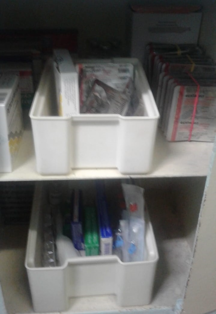 В ходе проверки выявлено нарушение условий хранения психотропных веществ, сильнодействующих препаратов и наркотических средств: «Морфин» — 63 ампулы, «Фентанил» — 49 ампул, «Реланиум» — 120 ампул, «Промидол» — 40 ампул, «Феноборбитал» — 27 ампул.