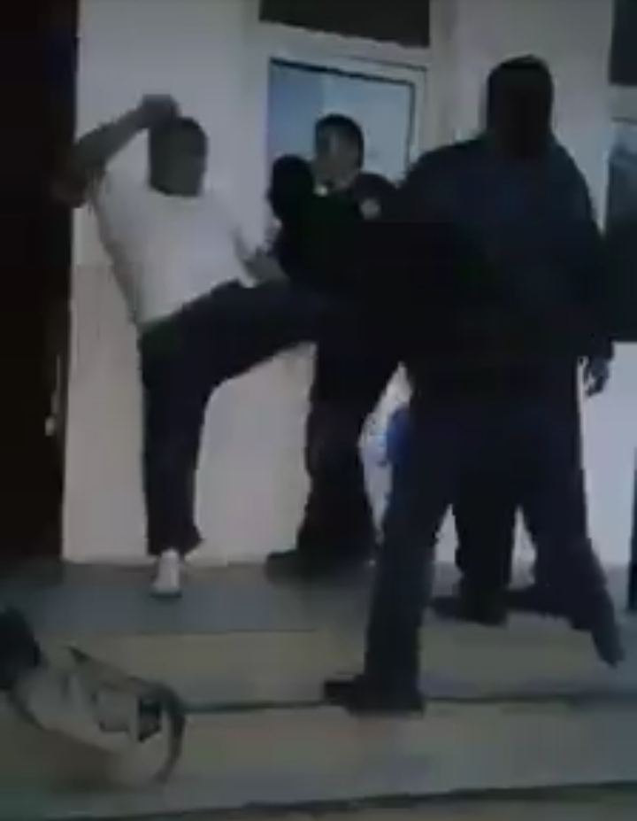 Түркістан облысы, Қазығұрт ауданының сотынан 19 наурыз күні «102-ге» мас халдегі ер азаматтың ғимарат ішінде шу шығарып жатқаны туралы хабарлама келіп түскен. Оқиға орын алған жерге аудандық полиция бөлімінің учаскелік полиция инспекторлары бағыт алады. Шу шығарған ер азаматтың 1980 жылы туылған жергілікті тұрғын Нұрлан Смайлов екені анықталды. Азамат Смайлов заң қызметкерлерінің заң талаптарына агрессия танытқан. Сонымен қатар соттың қызметкерлері мен келушілерінің көзінше полиция қызметкерлерін боғауыз сөздерімен балағаттаған. Полицейлерді былапыт сөздерімен балағаттаған іс әрекеттерін Смайлов өзін алып барған аудандық полицияның ауласында да жалғастырған. Сонымен қатар, физикалық тұрғыдан қарсылық танытқан. Аталған жайт 19 наурыз күні Қазығұрт АПБ-не ҚР Қылмыстық кодексінің 378-бабы «билік өкілін қорлау» бойынша сотқа дейінгі тексеру амалдары жүргізілді. Сараптама тағайындалды. Сараптаманың қорытындысы бойынша азамат Смайлов учаскелік полиция инспекторына дене жарақатын салған. Қазіргі уақытта ҚР ҚК-нің 380-бабы «билік өкіліне қатысты күш қолдану» бойынша сотқа дейінгі тексеру амалдары жүргізілуде.
