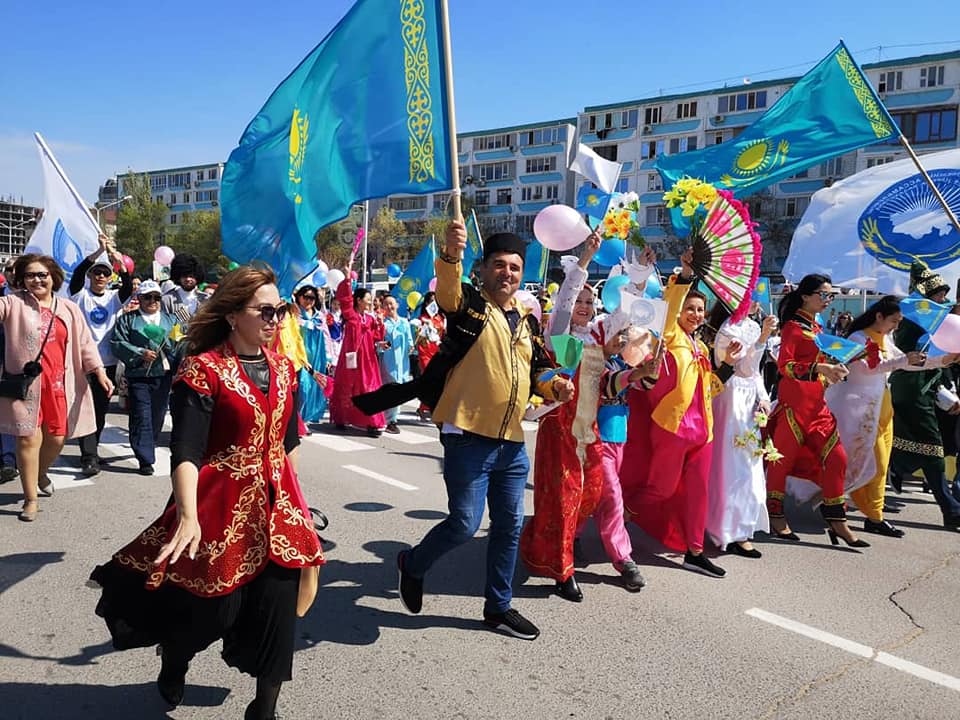 В Актау празднование 1 мая Дня единства народа Казахстана началось с парада трудовых коллективов. В параде приняли участие 33 коллектива и более 5 тысяч человек.