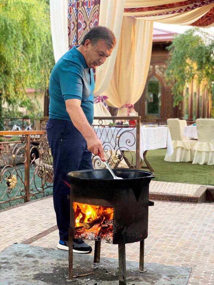 Иногда Папа сам готовит плов для нашего семейного дастархана, а мы ему помогаем. Поздравляю с днем Арафа!- деп жазады фейсбук парақшасында Saida Mirziyoyeva