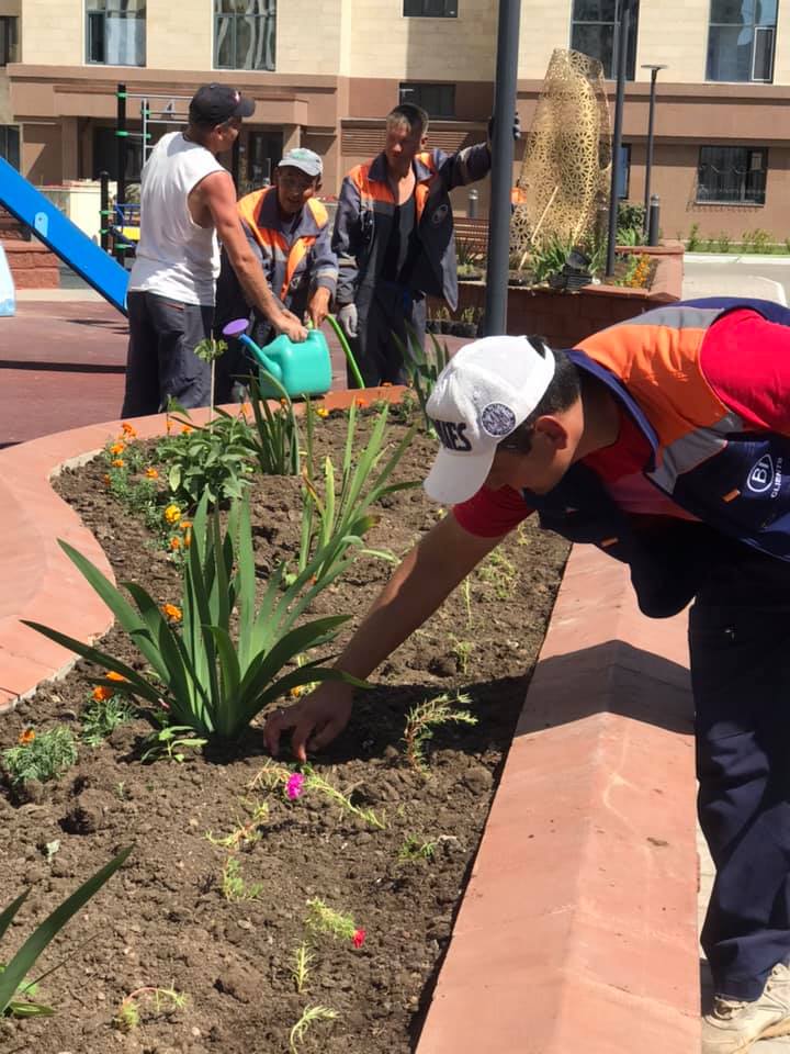 Барқытгүл, қараот, құртқашаш және гладиолус «Арман қала 10» тұрғын үй кешенінің ауласын одан әрі көркейте түсті. Барлығы да көп жылдық гүлдер, бірақ ұқыпты күтуді қажет етеді. Біздің дендролог гүлдерді отырғызумен қатар, күтіп ұстауды қызметкерлерге үйретті.