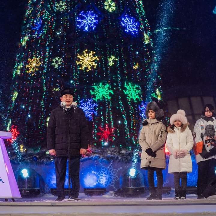Жаңа жылдың символы «Нұр Әлемнің» жанында орналасты. Жаңа жылдық шыршаның шамдарын жағу рәсіміне елорда әкімі Алтай Көлгінов қатысты. Қала әкімі елорда тұрғындары мен қонақтарын келе жатқан Жаңа жылмен құттықтады!