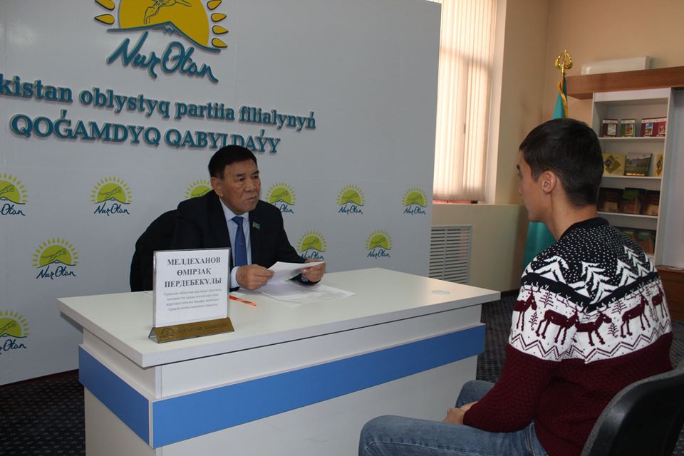 Бүгін, «Nur Otan» партиясы Түркістан облыстық филиалының қоғамдық қабылдау бөлмесінде Түркістан облыстық мәслихат депутаты, мемлекеттік-құқық мәселелері және жергілікті өзін-өзі басқару жөніндегі тұрақты комиссиясының төрағасы Мелдеханов Өмірзақ Пердебекұлы жеке қоғамдық қабылдау өткізді.