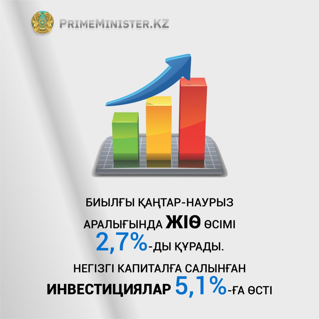 Қазақстанның биылғы І тоқсандағы әлеуметтік-экономикалық даму қорытындысы туралы баяндай отырып, министр қаңтар-наурызда жалпы ішкі өнімнің өсуі 2,7% құрағанын атап өтті.Негізгі капиталға салынған инвестициялар 5,1%-ға өсті. Жылдық инфляция 6,4% құрады.
