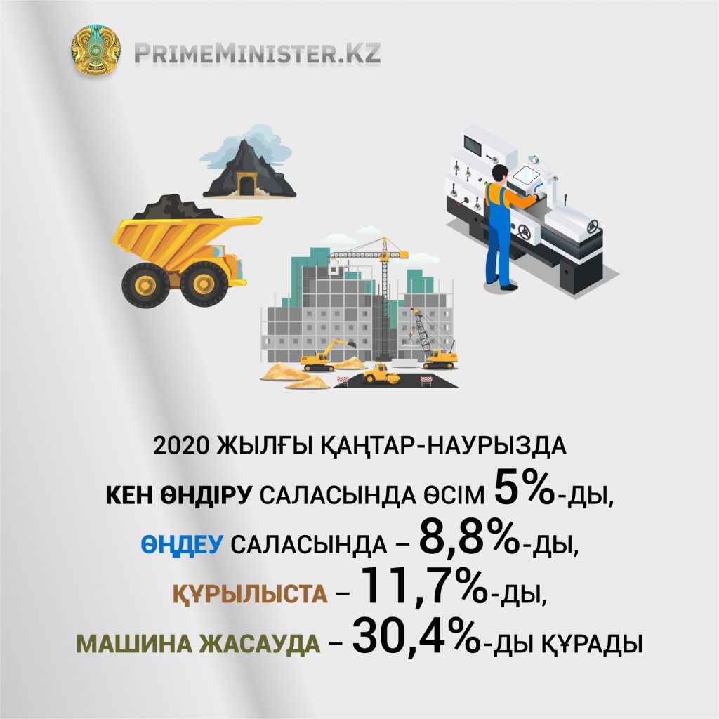 Құрылыс секторында 11,7% деңгейінде серпінді өсу байқалады. Соның ішінде 16 өңір өсім көрсетті. Қарағанды облысы ең жоғарғы 50,8% өсімді көрсетті.