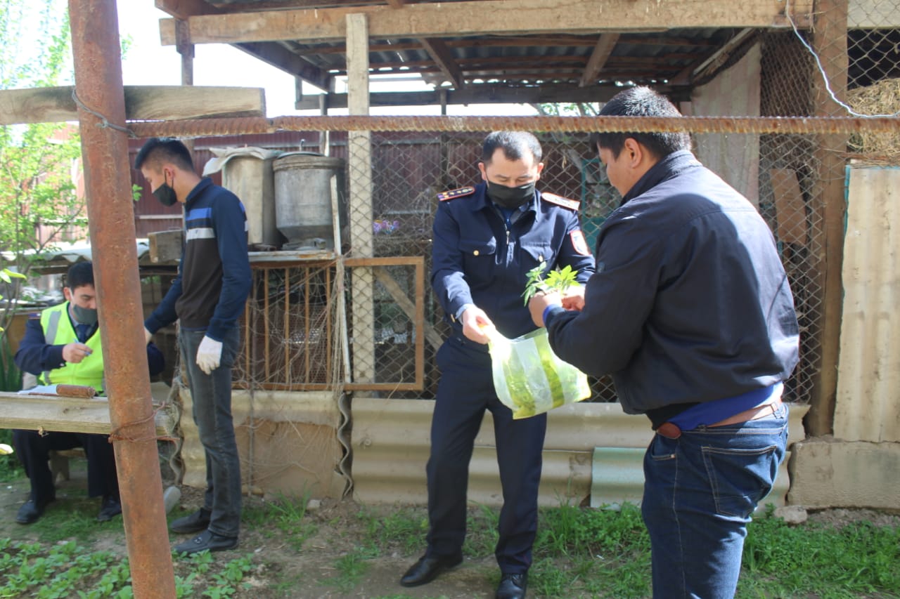 Түркістан облысы полицейлері есірткі егілген ауланы тауып, күдіктіні құрықтады-деп хабарлады, Түркістан облысы полиция департаментінің баспасөз қызметі.
